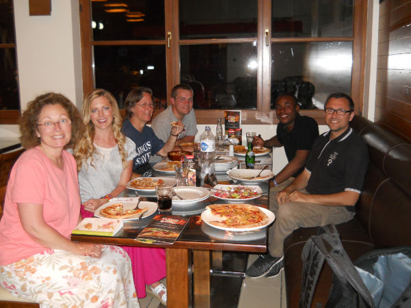 We walk into Br. Angelo’s favourite pizza place and greeted Kyaday (incorrect spelling:) but I am torn between eating and wanting to go to bed. Apparently eating is more important than my beauty sleep:) It was so good, I had the Super pizza but I still am in love with Angilina’s pizza in Snow Lake. There is nothing like it. Sorry Greece! After finishing our pizza at 9:40pm we decide to rush over to the pastry shop for ice cream. We all pile into the small car with Elisabeth, me, Laura M and David in the back. Elisabeth politely asks us to all move over so she could have more room! She is so sweet and funny and we don’t move! We arrive 1 minute passed 10:00pm but the lady has graciously stayed opened for us. She is a real neat lady and I think she has taken to Br. Angelo. It would not surprise me if he wins her heart to the Lord. That would be so exciting! It was a great time and the desire to sleep is set aside as we are really enjoying each others company.