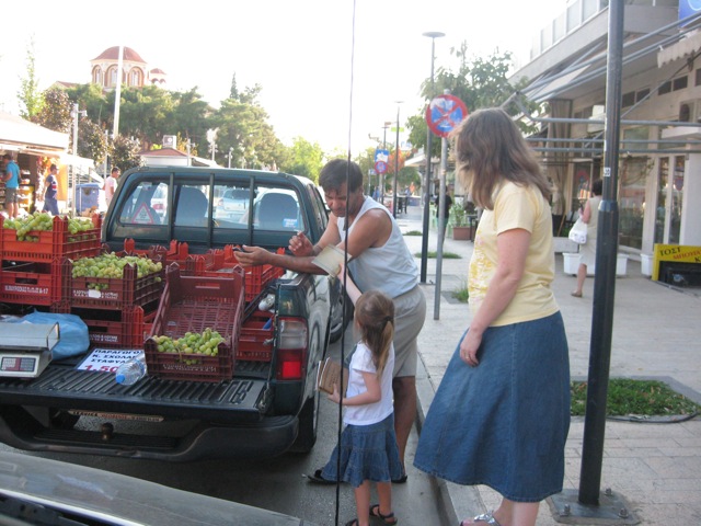 The little ones make effective witnesses. Don’t underestimate them! See the picture of 5 year old Megan handing out a Gospel of John to a vendor on the street in Thermi.