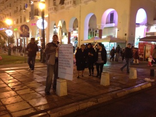 Worked a good evening shift at the platea and distributed 1,000+ gospel tracts. Also took down the Acts 20:21 / Romans 1:16 sign, which many stopped to read. Greatly missed having the Koletases with us. Truly enjoyed laboring with them. And having someone able to speak to the people in their native tongue obviously made a huge difference.