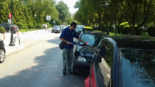 Χαιρετίσματα από Θεσσαλονίκη (greetings from Thessaloniki). Today, we had a great time doing a walk-about tract distribution. We left them on cars, trucks, bikes, walls, phones, ticket booths, and gave them to many people people. In all, we walked for two hours. We wanted to go longer but had to get back to the church so that an a/c unit could be installed. While we were there, we made good use of our time and cleaned the building and performed some maintenance.