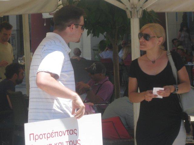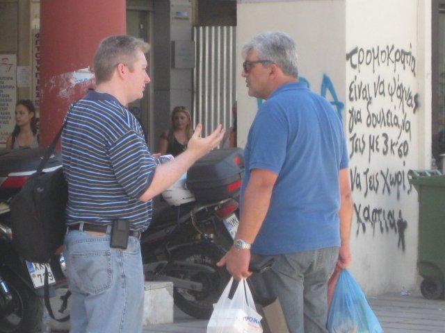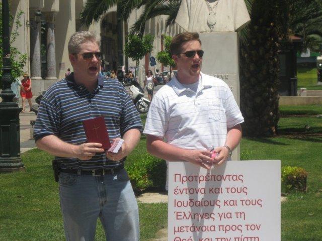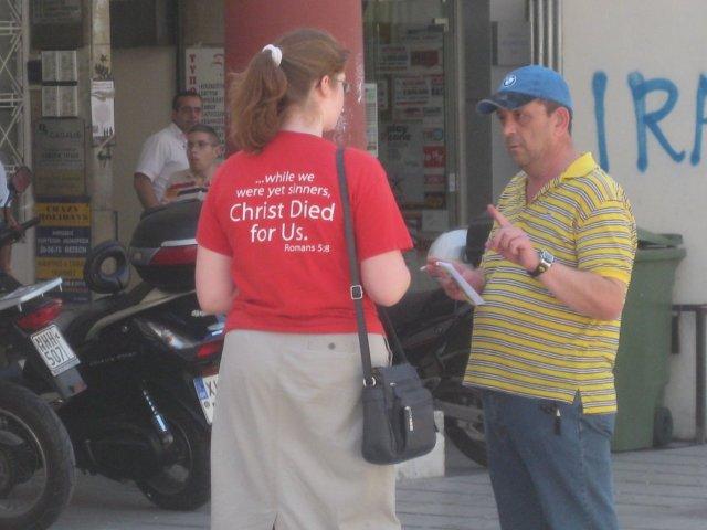 A new wrinkle has emerged in this work. Since we first hit the streets here we have been confused by our encounters with those who attend the Evangelical Church, as it seems almost all of them lack any real understanding of salvation. The man photographed below cleared things up a bit. The man believed he was born again when he was baptized as a child. He said there were thousands of evangelicals like him in Thessalonica and that because they were baptized in an evangelical church they were saved and were like us. Another soon came along with a similar lack-of-testimony.