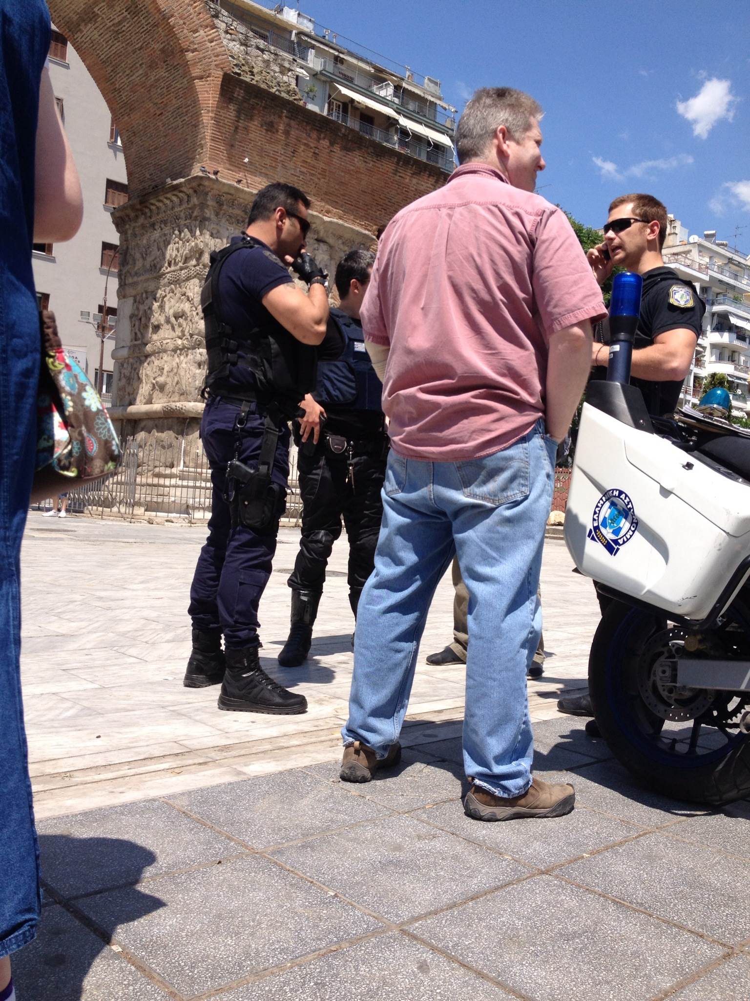 How would you react to a man in a long, black robe instructing people that the freely distributed word of God was heresy and then commanding little children to kiss his hand in a sickening show of power and pride? Well, we did as the Lord instructed and preached Jesus Christ crucified, buried and risen again for the salvation of men’s souls! The man in the long, black robe hates this message, he hates Jesus, the Bible and he hates the men who preach it and the women who hand it out (Jn. 15). So, as any good church-run state would do, the man in the long, black robe makes a phone call and the Christians get hauled off to the police station…again, to have our passports checked…again, in order to stop the preaching and distribution of God’s word. While these events are light afflictions compared to persecutions of past Christians, not to mention our Lord and Saviour, they are nonetheless annoying and disrupting…and illegal :). We were not officially “under arrest”, but were forced to ride in the back of police cars to the station and locked in a holding area with common criminals…while our passports were “checked”, of course. After about 45 minutes, we were released. Four Americans, a Brit and an Aussie all guilty of giving out the gospel…Praise the Lord!