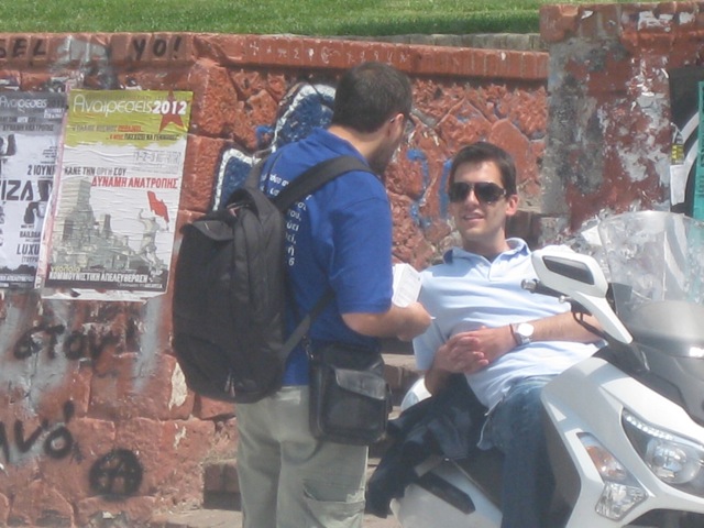Meanwhile brother Benjamin is witnessing to a man named Nikos another off duty police officer (picture 6 below).
