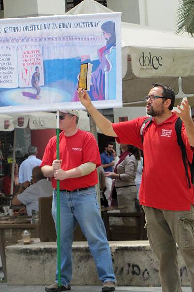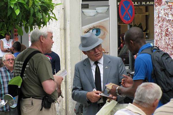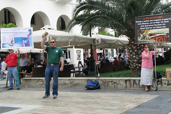 Crowds were back to normal capacity as our group ministered on the streets in the city. Three preachers sounded forth the saving gospel to this generation of Greeks on the same ground where Paul preached the same saving gospel to his generation (Acts 13:36). The word of God quietly worked on the hearts of those who would receive it and good conversations were had in both Greek and English. One man read the entire Gospel of John before going on his way while another couple, who spoke very good English, sat and listened to the men preaching until they all finished before going leaving. Let us continue to pray the seed sown will find good ground and bear much fruit to the glory and praise of our Saviour!